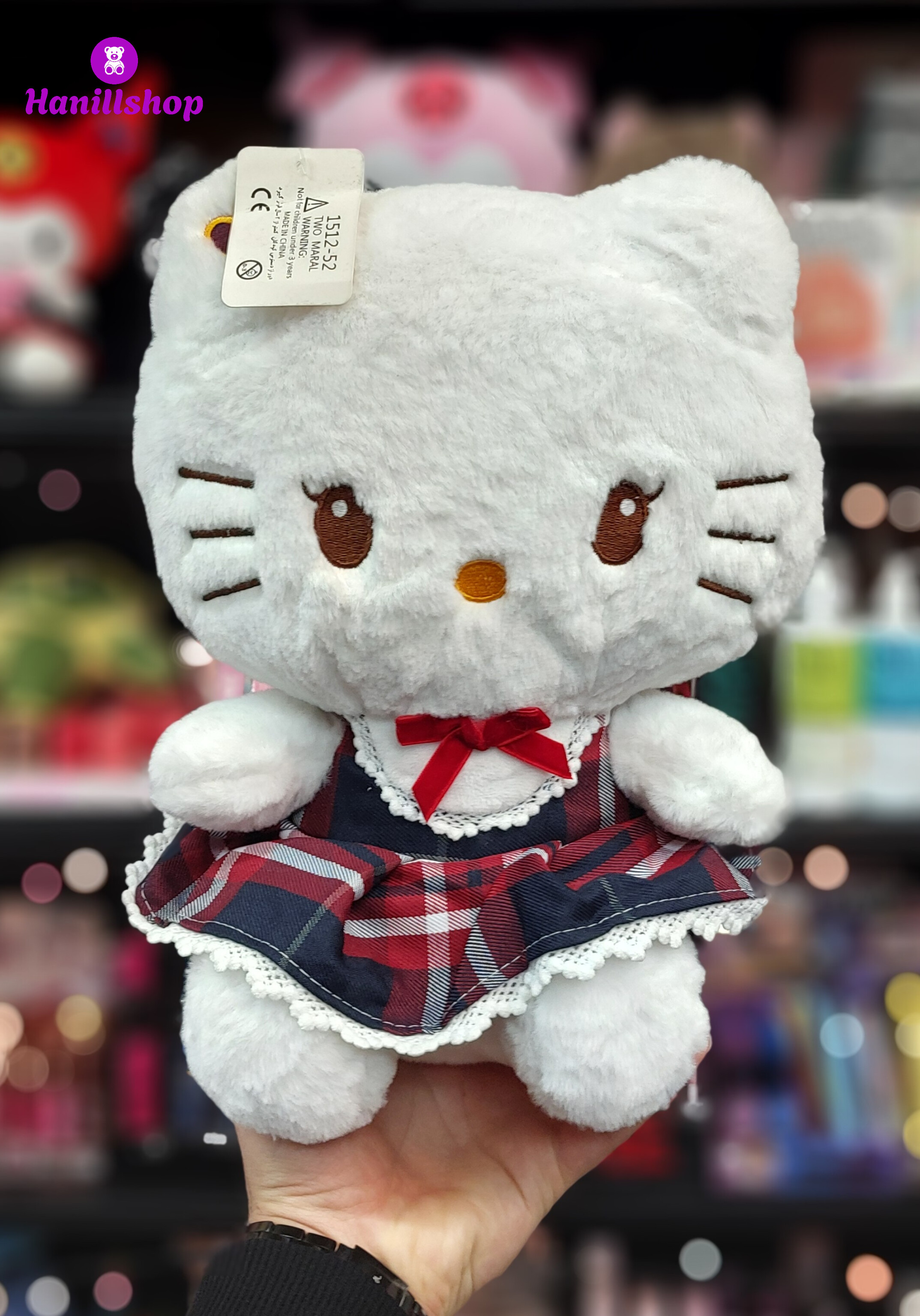 عروسک کیتی لباس چهارخونه پولیشی خارجی ۴۰ سانت