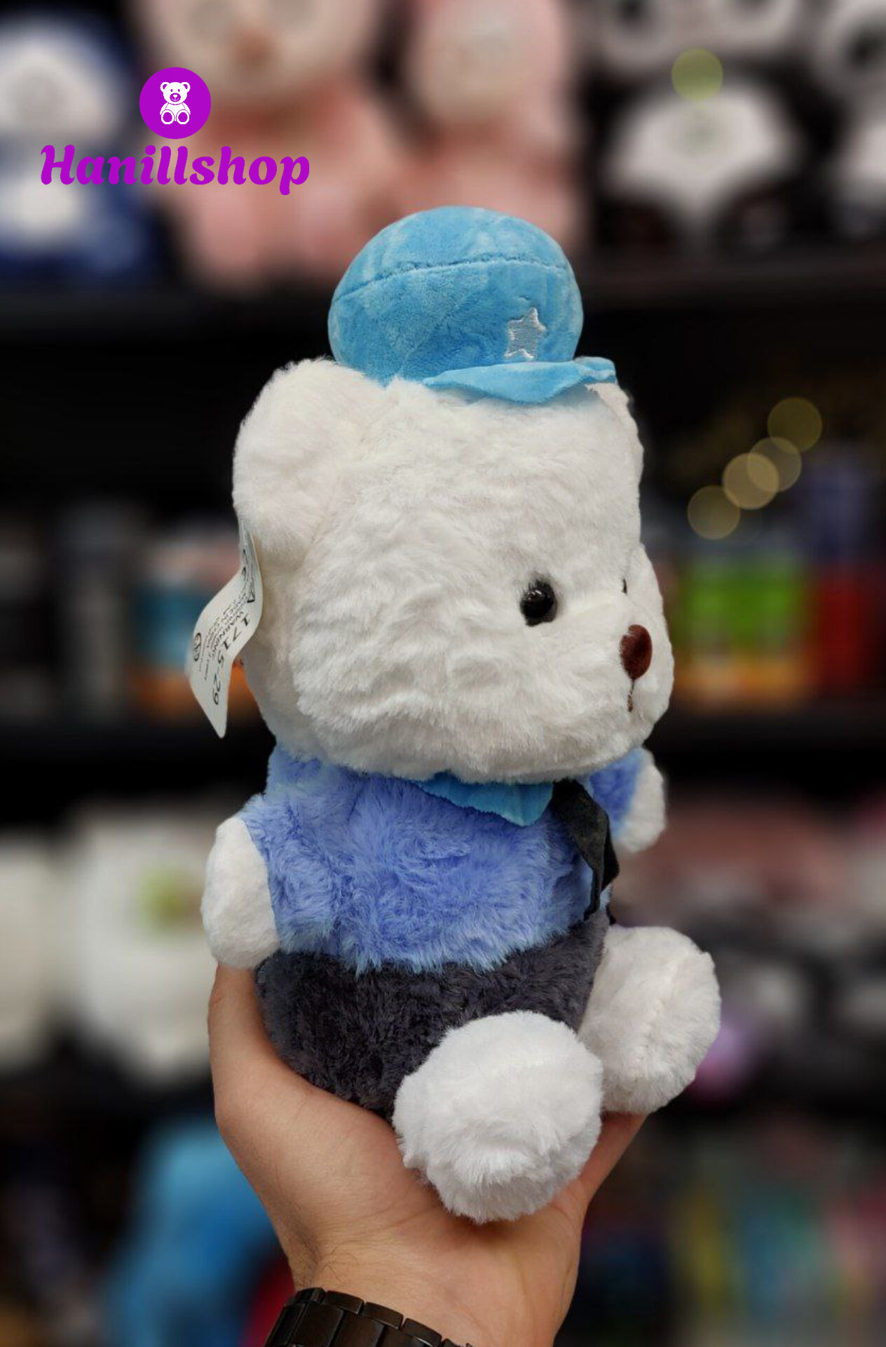 🩶این خرس بامزه با رنگ سفید و لباس پلیسی بسیار زیبا، ظاهری شیک و متفاوت دارد و با ارتفاع ۳۰ سانتیمتر، این عروسک اندازهای ایدهآل برای بغل کردن، دکور کردن یا هدیه دادن دارد.